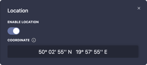 Location - allows to enable location services and set static device geolocation using coordinates.
